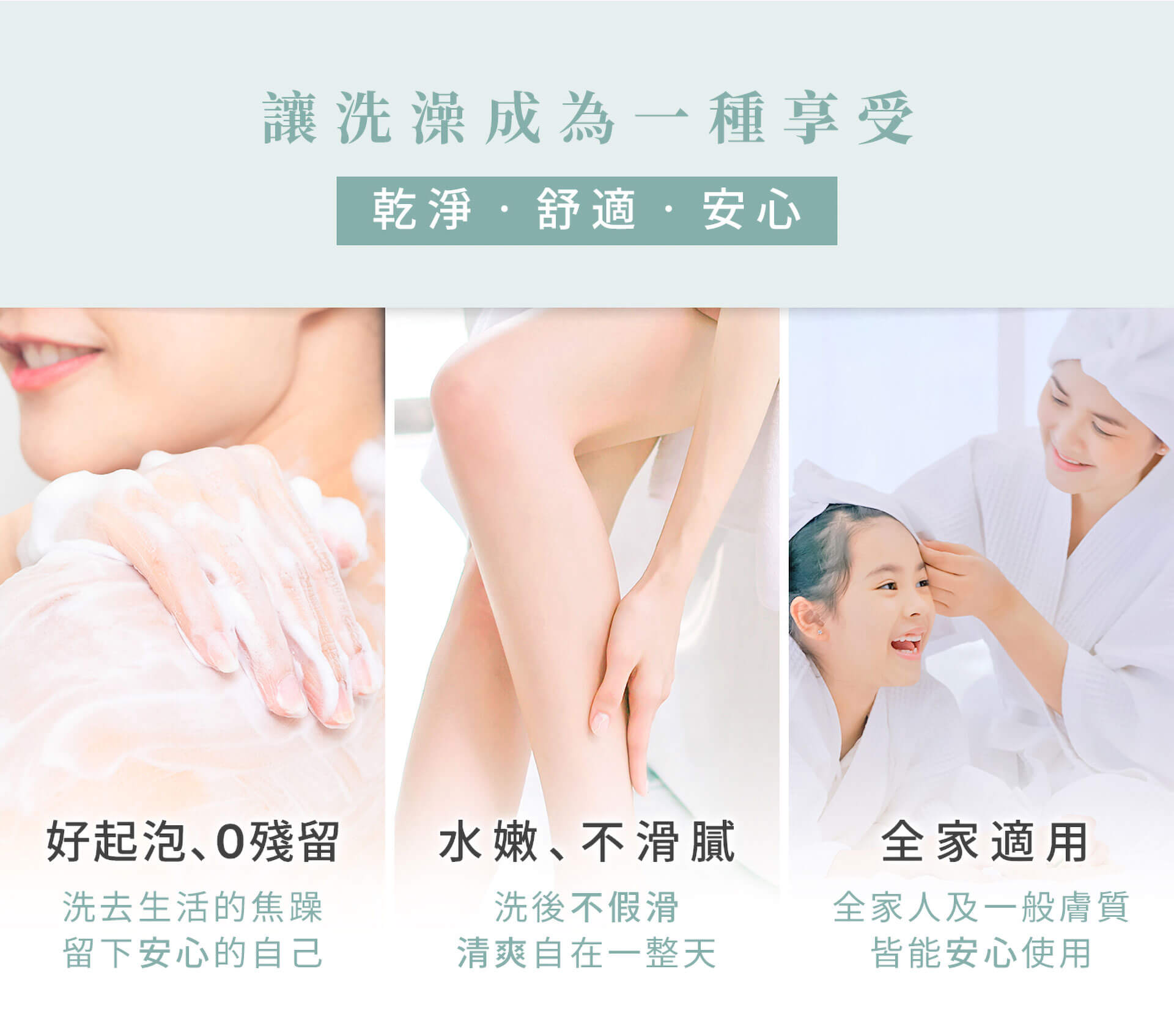 • 無皂鹼、SLS/SLES等爭議成分、使用更安心