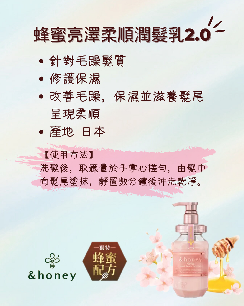 【使用方法】洗髮後,取適量於手掌心搓勻,由髮中向髮尾塗抹,靜置數分鐘後沖洗乾淨。