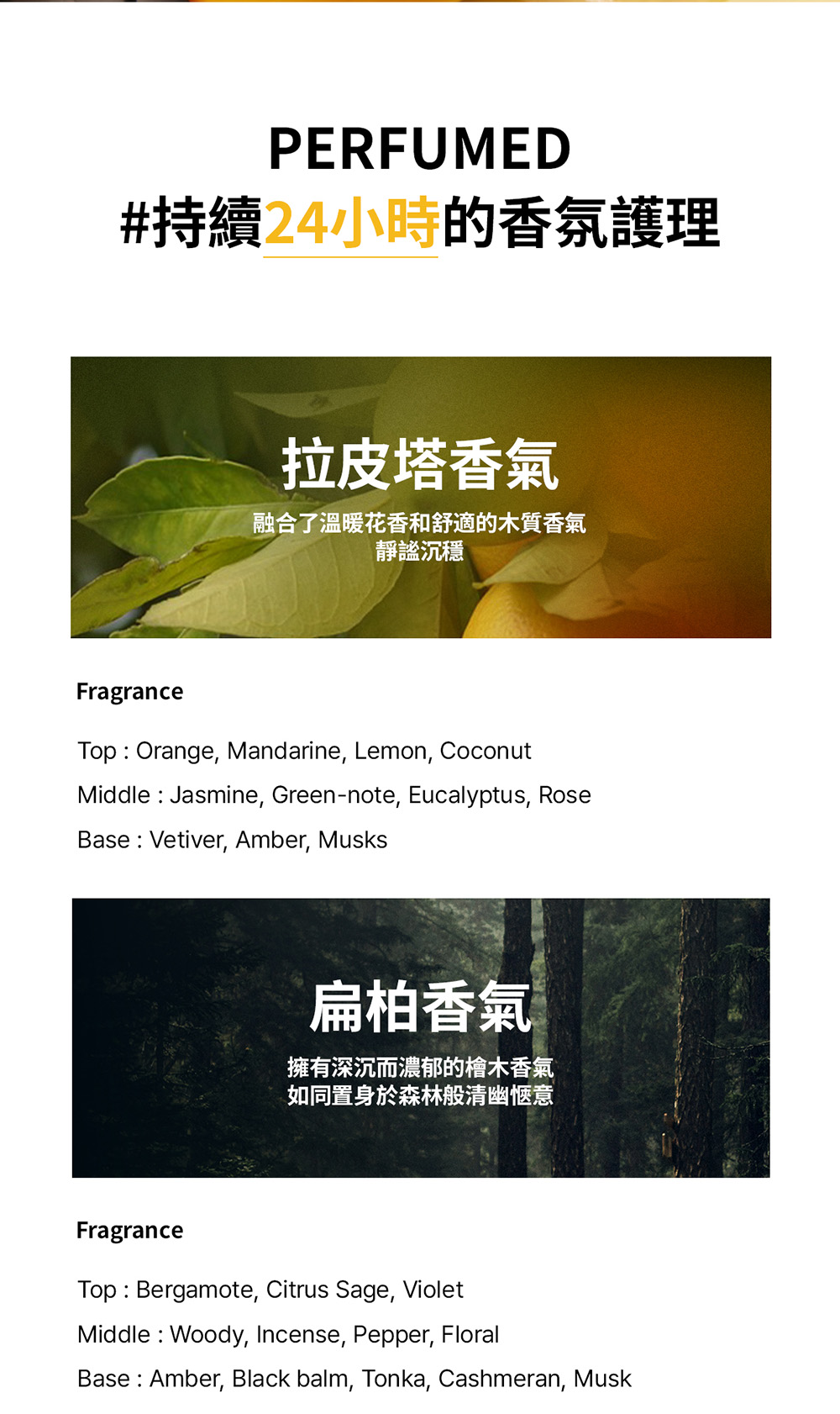 前調:佛手柑、柑橘、鼠尾草、紫羅蘭