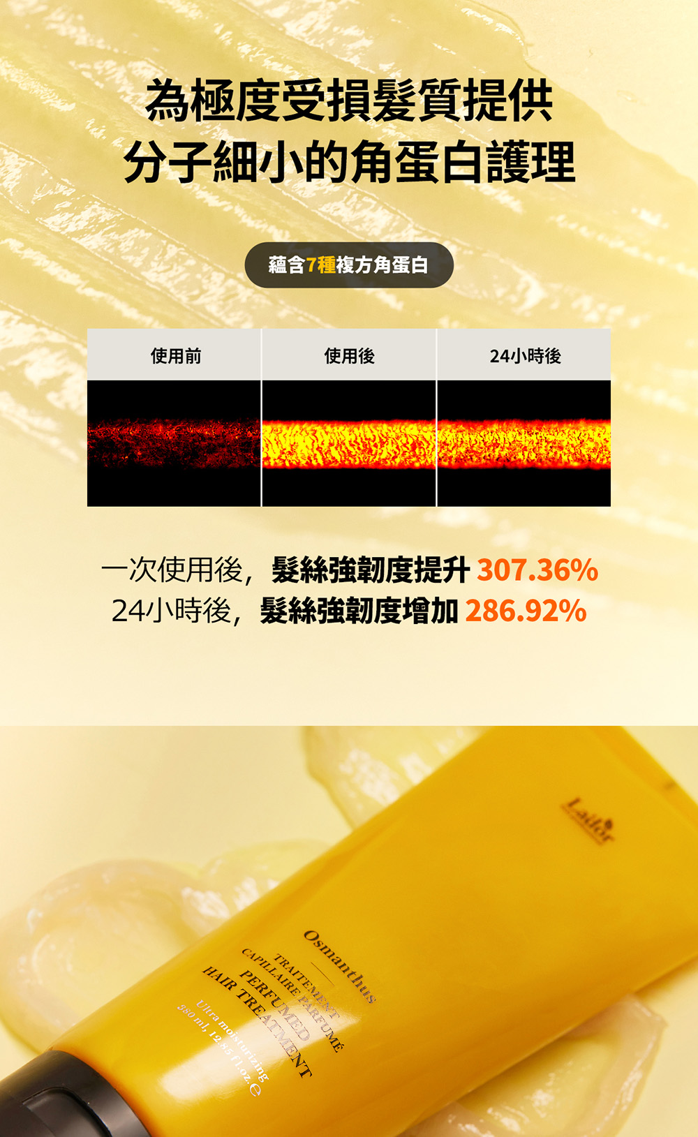 –針對極度受損髮專用護理,凝膠霜質地滋養髮絲容易吸收