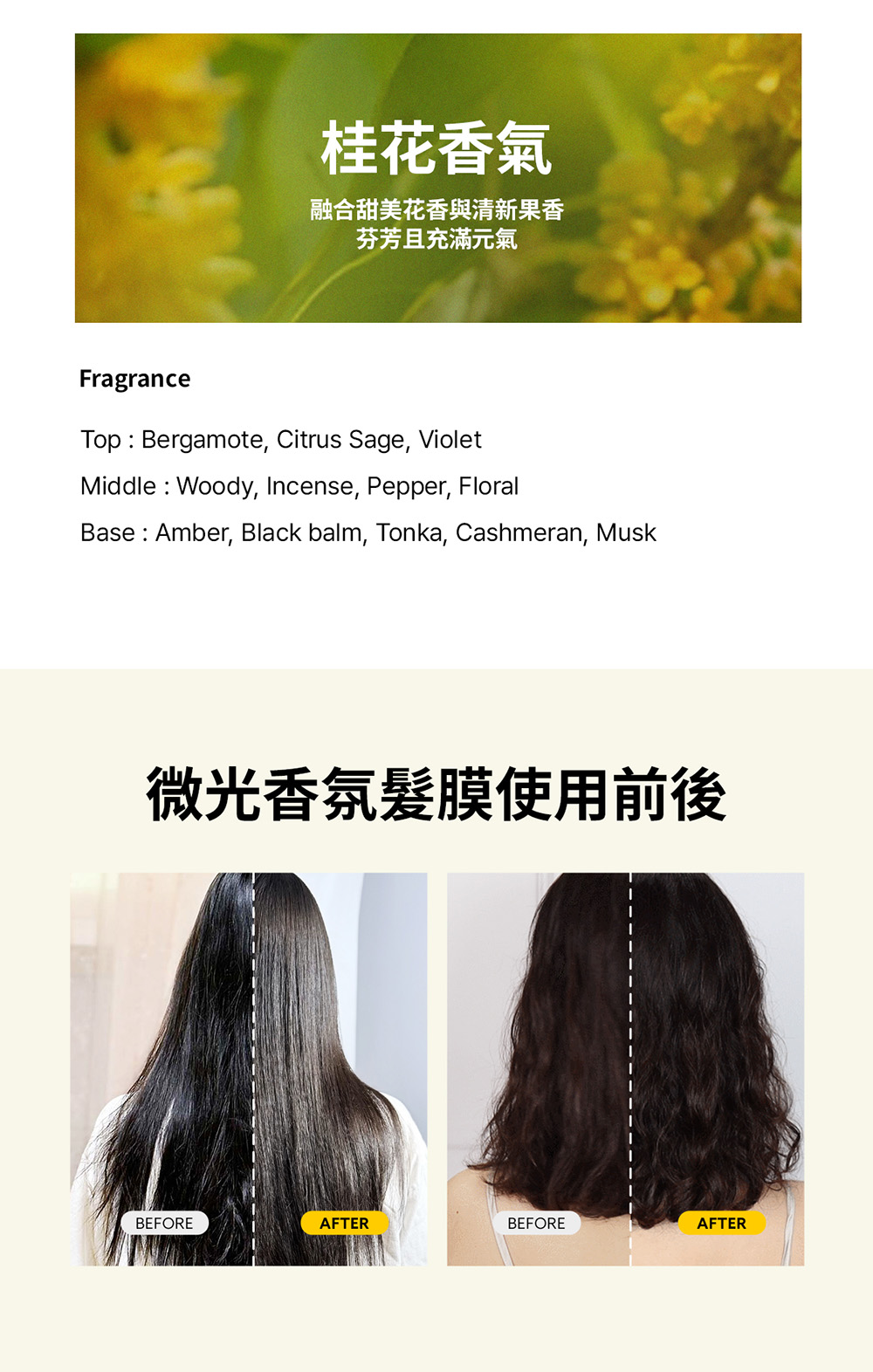 洗髮後,取適量髮膜均勻塗抹於髮尾至髮中段,並停留3-5分鐘後以溫水沖淨。