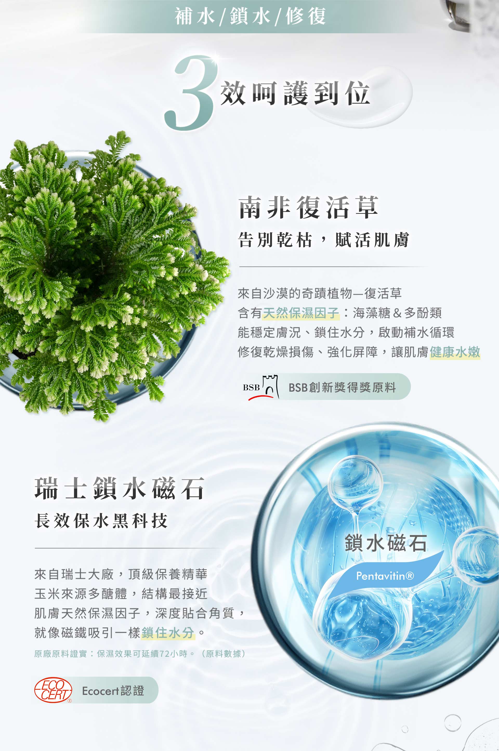 - 南非復活草:補水鎖水雙效, 長效保濕
