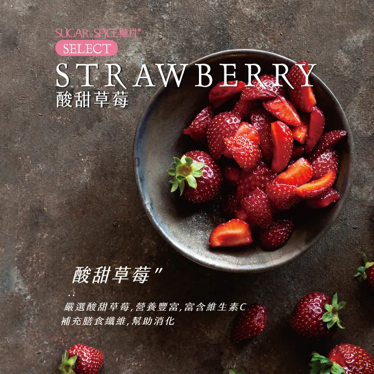滿口香濃的草莓味,搭配新鮮草莓製成的果乾,充滿美味的幸福滋味!