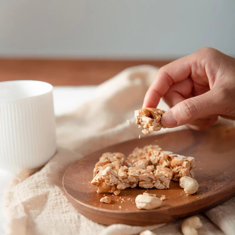 腰果酥採用嚴選堅果與熬煮精質的麥芽糖漿翻炒,並混入精選白芝麻粒,每口都能咬到飽滿分明的腰果,香氣自然、酥脆不黏牙,絕對是一口接一口的熱門零嘴。