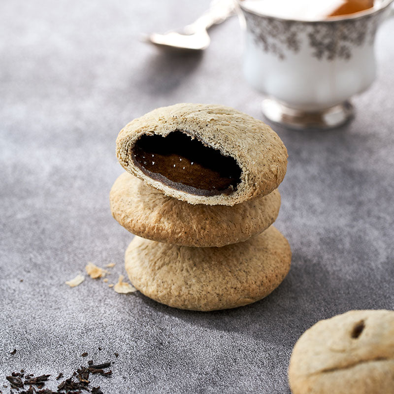 選用唐寧伯爵茶葉(TWININGS)研磨製成,味道典雅,帶著微微的佛手柑清香,嚐一口餅,佐一杯茶,彷彿置身於英倫皇家貴族的風雅閒適,讓心靈沉浸在茶香芬芳!