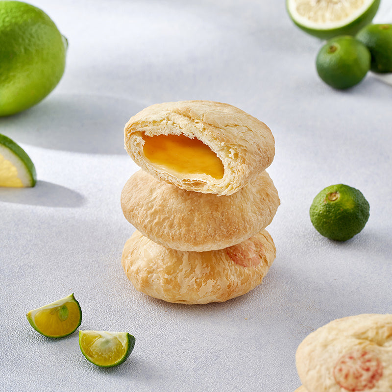 攜手有農業綠金之稱的台灣原生種香檬(扁實檸檬),率先將酸甜水果入餅。