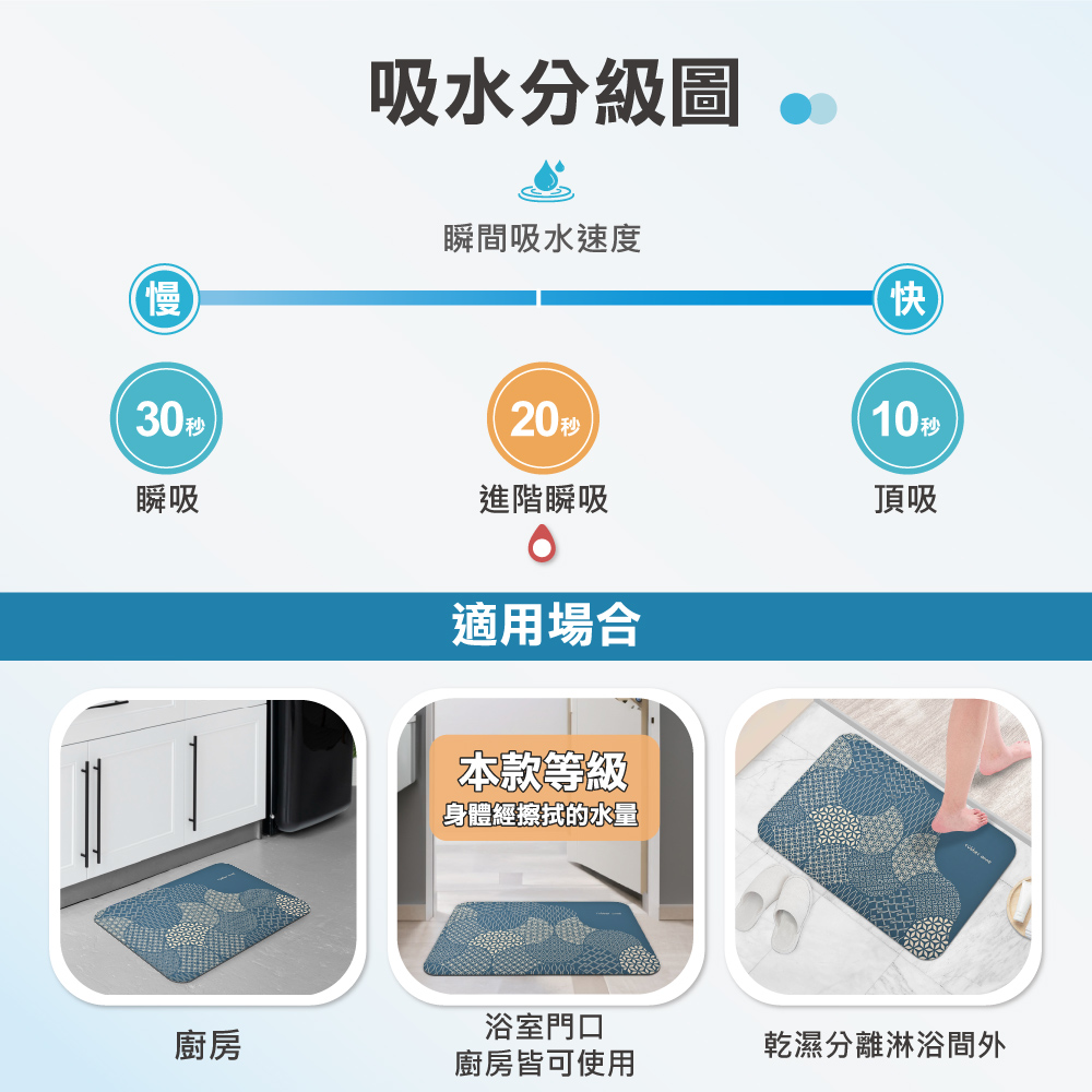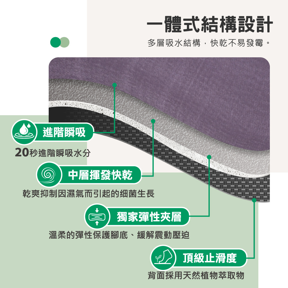 - 表層瞬間吸水材質,踏感柔軟。