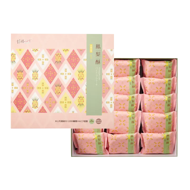 精選台灣在地原料,以完美比例的鳳梨醬(鳳梨與冬瓜占比50:50)製作,使餡料的甜度達到極致口感,甜而不膩。吃的到鳳梨纖維與絲絲果肉的香甜,完美的搭配濃純香酥的外皮。