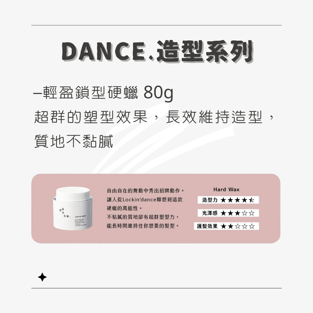 –輕盈鎖型硬蠟 80g超群的塑型效果,長效維持造型,質地不黏膩