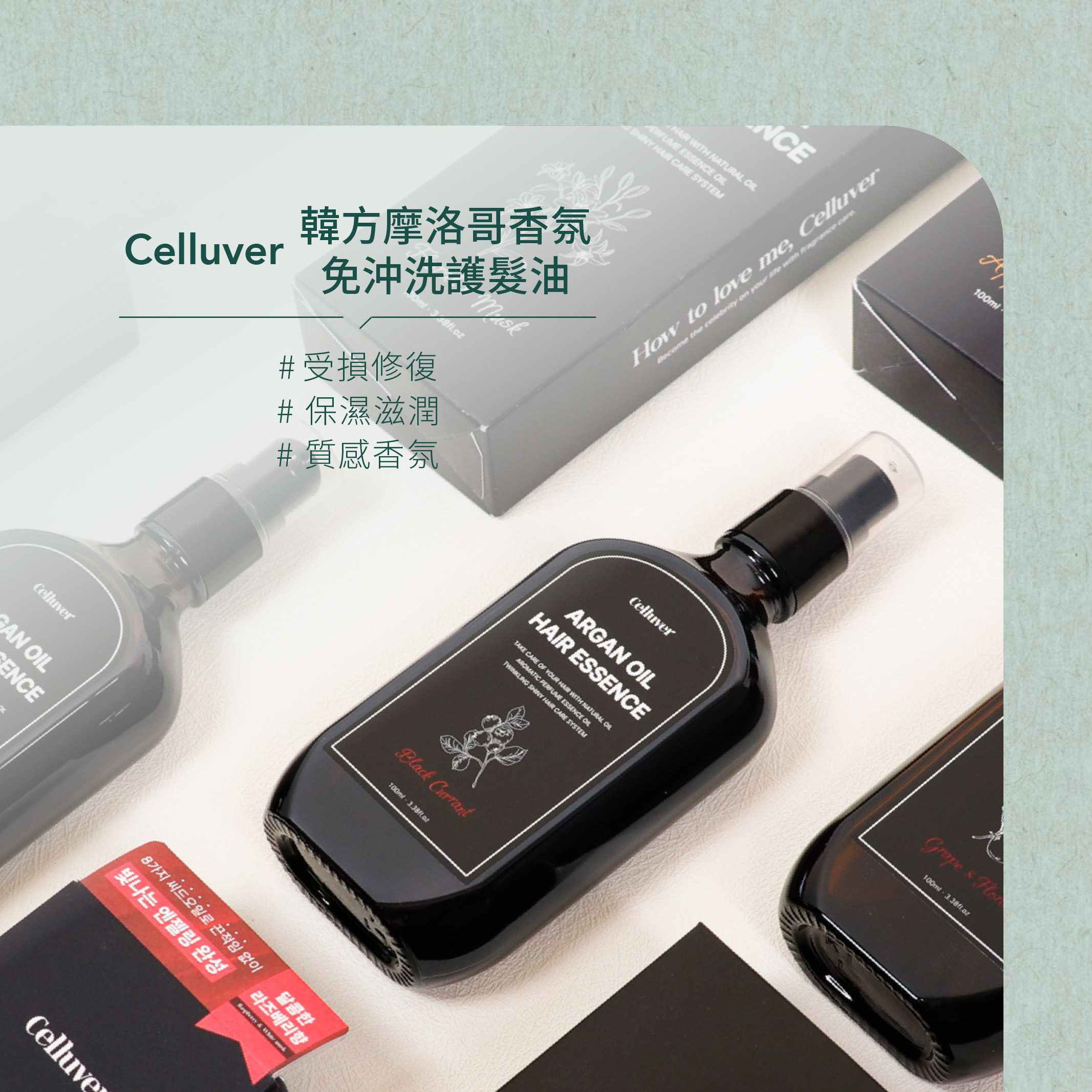 - 含摩洛哥堅果油、玫瑰果油、白芒花籽油等8種頂級精油成分