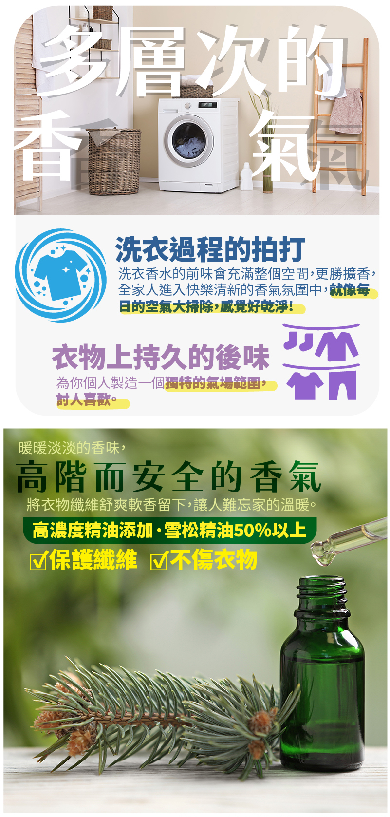 平安洗衣香氛因含有精油成分,非全香精香味較淡,可自行斟酌增加用量。