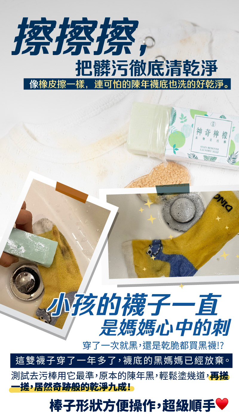 使用方式:沾濕衣物後,使用去污棒塗抹於衣物需加強清潔處,輕輕搓揉後即可進行後續洗衣程序