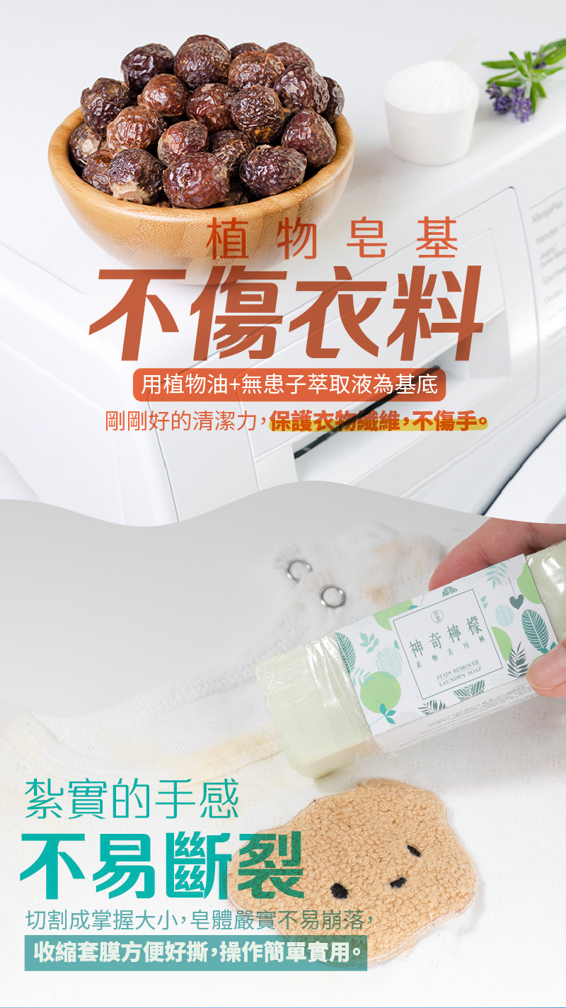 - 植物油+無患子萃取液~保護衣物纖維,不傷衣料