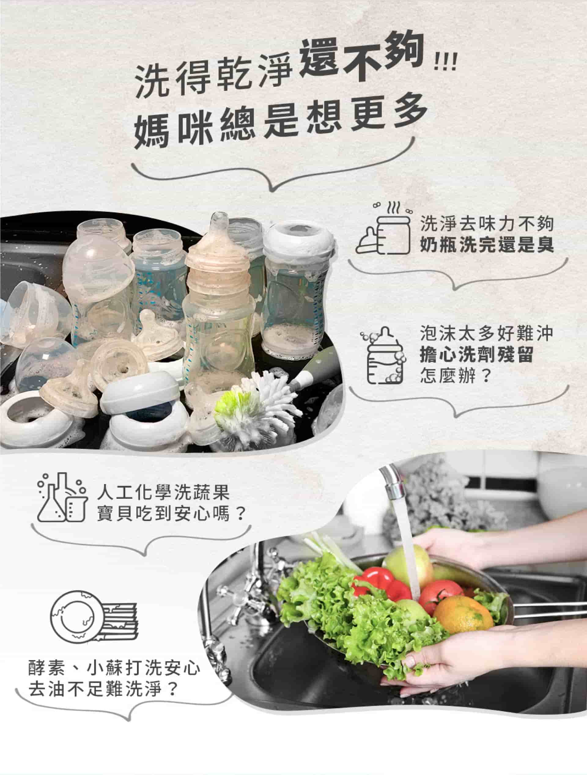 不管是奶瓶、餐具還是食物,家長們總是想給寶貝最好的,希望寶貝吃的、用的,都能確保品質純淨無害。但在挑選奶瓶蔬果清潔劑時,你是不是也曾碰過這些狀況呢?