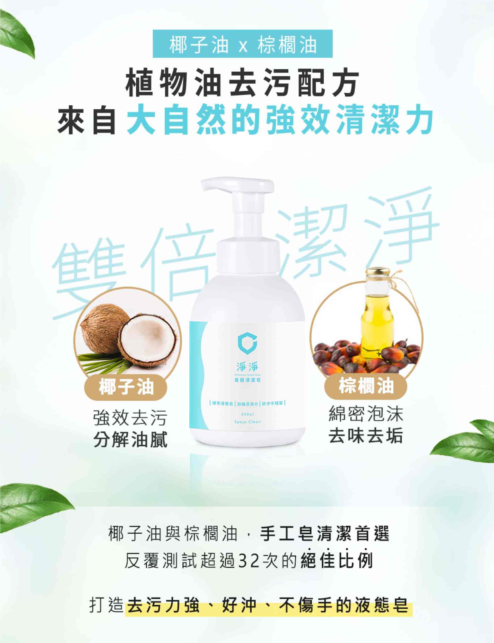 椰子油 × 棕櫚油 × 小蘇打,成分單純不傷手,強效 3 合 1 成分輕鬆洗出純淨!