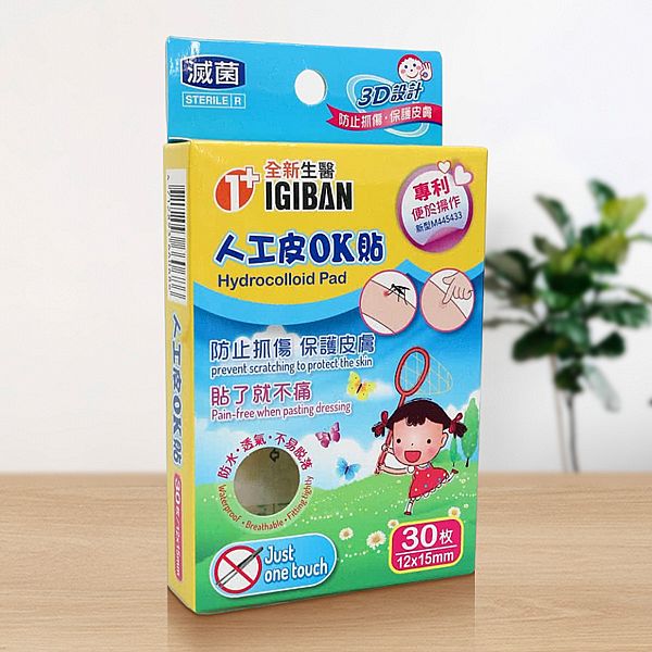 4.將露出一半的OK貼,直接黏貼於患部處;輕輕取下背紙。
