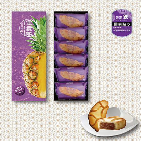 淨重:210g內容物:台灣金愛餅(傳統鳳梨)X6入尺寸:單位 cm 長25.5X寬10.5X高6.4素食別:奶蛋素