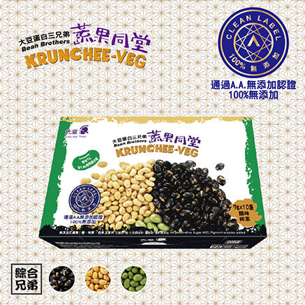 【大豆蛋白三兄弟-綜合兄弟】採用台灣生產非基因改造的黑豆、黃豆、毛豆食材:
