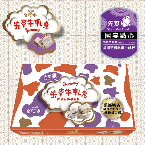 先麥獨家創始口味,供不應求的「先麥芋頭牛軋糖」,將芋頭的好味道包裹在軟質的牛軋糖中,酥脆的芋頭原味與牛奶的相遇、不甜不膩,適合喜愛吃不黏牙的牛軋糖的您。