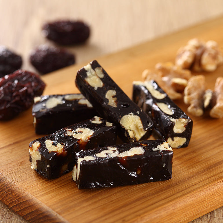 黑棗、核桃、海藻糖、海樂糖、麥芽糖、桂圓肉(含蘭姆酒)、大豆沙拉油、醋酸澱粉、味醂【果糖、糯米、米麴、糖、釀造酢、鹽、調味劑(胺基乙酸、檸檬酸鈉、DL-胺基丙酸、5-次黃嘌呤核苷磷酸二鈉、5-鳥嘌呤核苷磷酸二鈉)】、洋菜粉 |