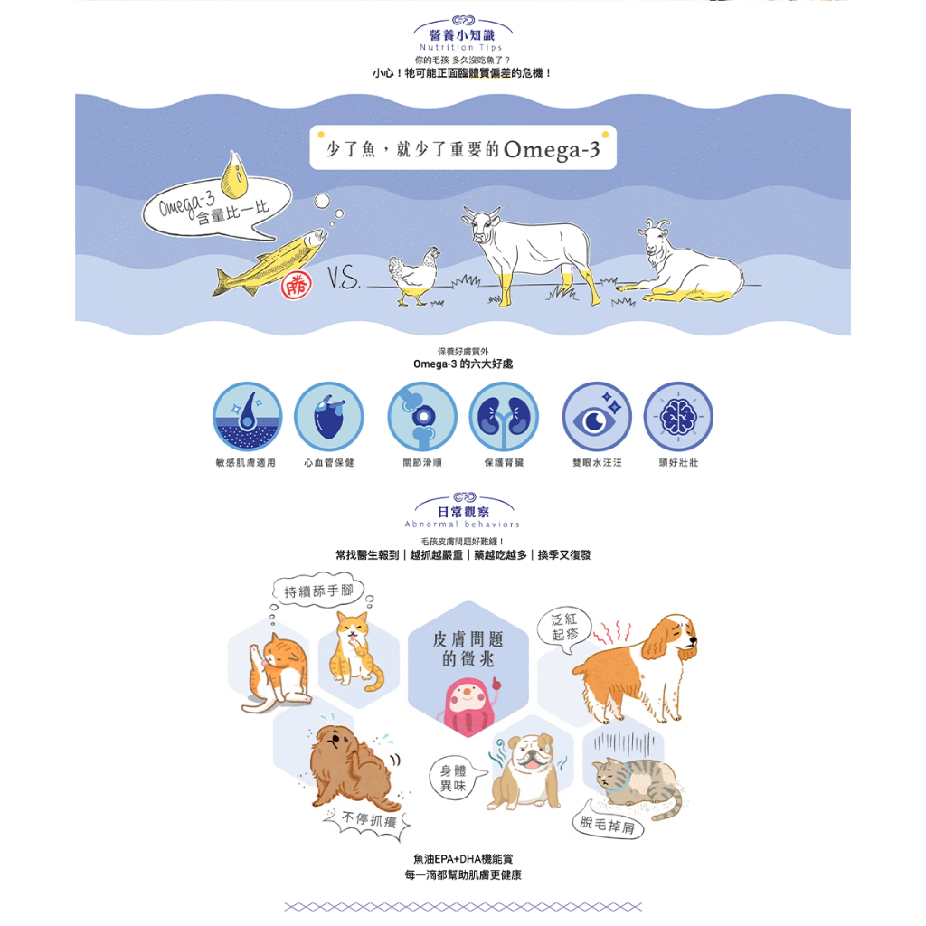 補充飼料欠缺的omega-3,調理好體質,呵護肌膚問題,