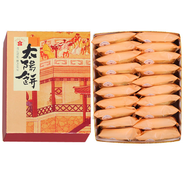 主要原料: 麥芽、無水奶油、含鹽奶油、水、細砂、麵粉、糖粉、蜂蜜口 味:太陽餅皮薄、酥香、餡又巧,有多層次的薄皮,入口即化,餡軟不甜不膩,口感香醇保存方式及期限:室溫下保存10天,不可冷藏(冷藏餡會變硬)備註 :奶素