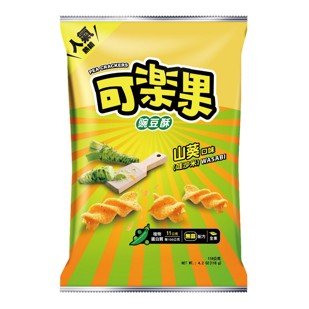 | 內容物成份 | 碗豆、棕櫚油、玉米澱粉、麵粉、樹薯澱粉、糖、小蘇打、鹽、醬油粉(醬油、麥芽糊精、鹽)、昆布精粉(麥芽糊精、昆布抽出物、鹽)、味精、碳酸氫銨、脂肪酸甘油酯、酵母抽出物、水解植物蛋白(水解小麥蛋白、棕櫚油)、高麗菜精粉(麥芽糊精、高麗菜抽出物)、海苔、複方香料(阿拉伯膠、糊精、芥籽油、香料、紅花黄、槴子藍色素)、二氧化矽、複方香料(香料、玉米油)、調味劑(5'-次黃嘌呤核苷磷酸二鈉、5-鳥嘌呤核苷磷酸二鈉) |