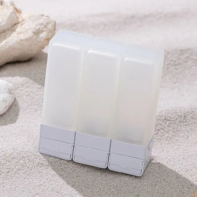 『防漏專利』 隨身洗沐好幫手 ! · 三層防漏,嚴密鎖扣安心裝· 水、乳、膏 任何質地輕鬆好擠· 積木卡扣設計,尺寸顏色隨心組· 全拆式零件,清潔容易